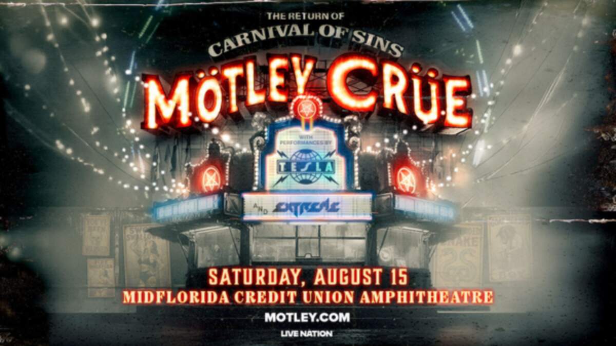 The Return Of The Carnival Of Sins: Mötley Crüe With special guests Tesla and Extreme Saturday, August 15 | MidFlorida Credit Union Amphitheatre | 6:30PM Purchase tickets HERE